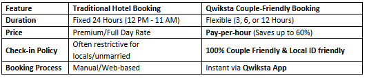 By leveraging the Qwiksta app, couples in India can now navigate the city with confidence, knowing that a safe, private, and affordable room is just a few clicks away. Whether it's a private stay for couples or a quick hotel booking for couples in transit, the future of Indian travel is undoubtedly flexible.